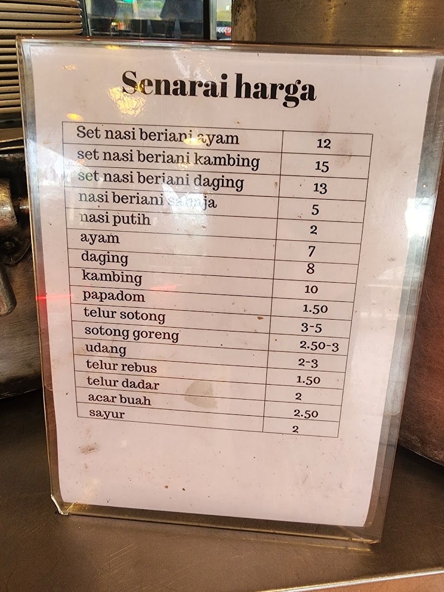 “ We were a group of four who decided to check this place out for Friday lunch before heading over to perform Friday prayers at Masjid TAR nearby. One big plus point straight away — there’s a huge car park right in front of the restaurant, so no stress about finding parking in the middle of the day. Walking up to the restaurant, you get that instant “Ipoh meets nasi kandar” vibe. The dining area is on the upper floor, open-air and breezy, with a nice view of the Ampang neighborhood and hills in the distance. The setup is simple but welcoming — long tables, casual seats, and plenty of space to move around. You can tell it’s the kind of spot that gets busy during lunch breaks, but it doesn’t feel cramped. The first thing that grabs your attention is the buffet-style counter. Big shiny woks filled with curries, fried chicken piled high, daging masala simmering away, and all the different gravies you’d expect from a nasi beriani joint. There’s also a section with claypots and fresh ulam with sambal on the side — a nice touch that makes it feel homely. I went for a mix of nasi beriani and nasi minyak (best of both worlds), topped with kari kambing and daging masala. Honestly, it hit the spot. The rice was fluffy and fragrant, the kambing tender with just the right amount of spice, and the daging masala rich and flavorful. The kind of meal that makes you pause for a moment before diving in for round two. Price-wise, it’s fair for the quality and portion. The menu is pretty extensive too — you’ve got ayam merah, ayam bawang, ayam Madras, kari kambing, plus lighter stuff like roti canai, roti telur, and even desserts like ais kacang and cendol. Drinks are your usual mamak favorites: teh tarik, kopi, Milo, sirap bandung. Basically, something for everyone. What I like most about this place is how convenient and fuss-free it is. Big car park, spacious seating and great food that doesn’t disappoint. It’s also super practical for those coming for Friday prayers at Masjid TAR — makan dulu, then solat, then go back to work with a happy stomach. Will I come again? Definitely yes. Next time I’ll probably try the ayam bawang and maybe throw in some roti canai for good measure. Beriani Ipoh has that “repeat visit” kind of charm — simple, tasty, and reliable. ”